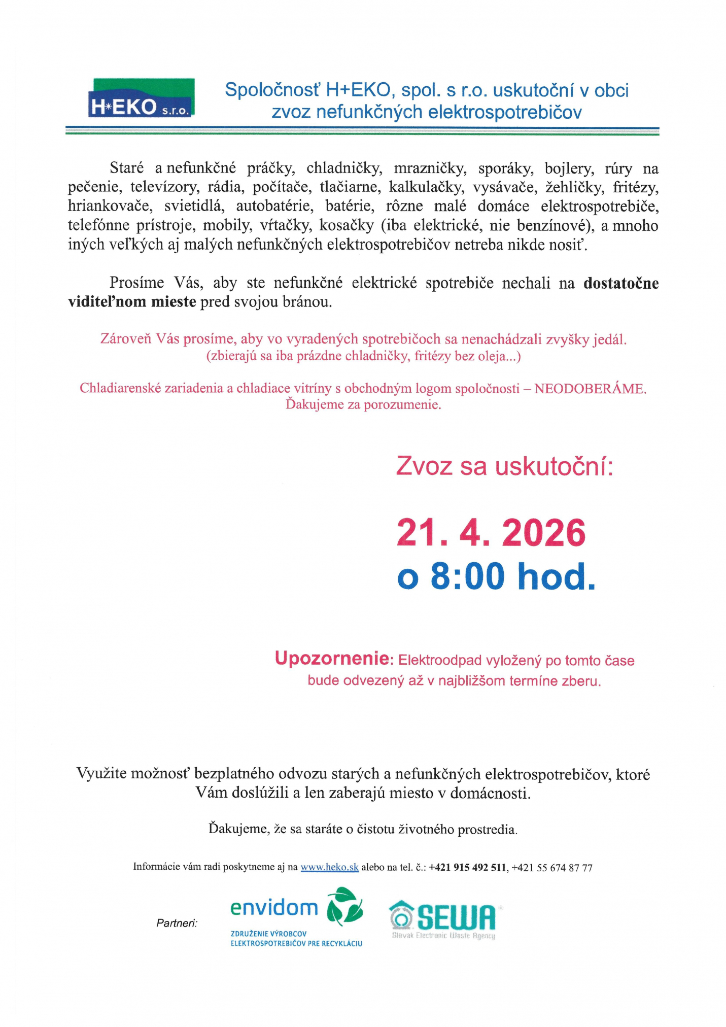 OZNAM - OZNAM - 21.4.2026 sa v obci uskutoční zvoz nefunkčných elektrospotrebičov