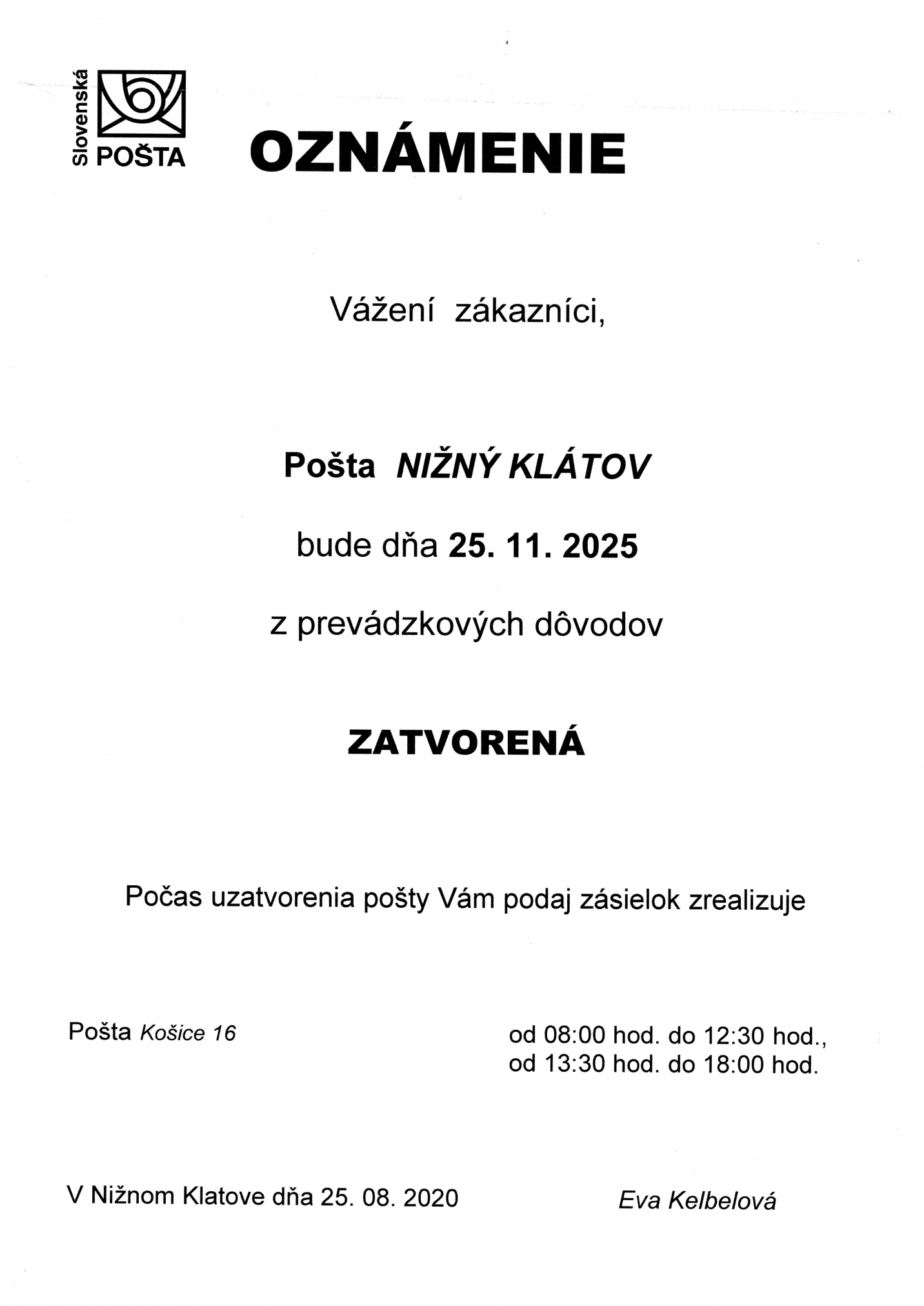 OZNAM - MUDr. Golianová - dovolenka od 1.12.2025 do 9.12.2025
